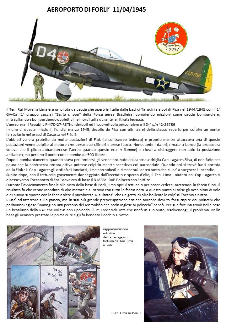 Pilota Ten. Rui Moreira Lima del 1° GavCa FAB. Crashlanding in aeroporto a Forlì.